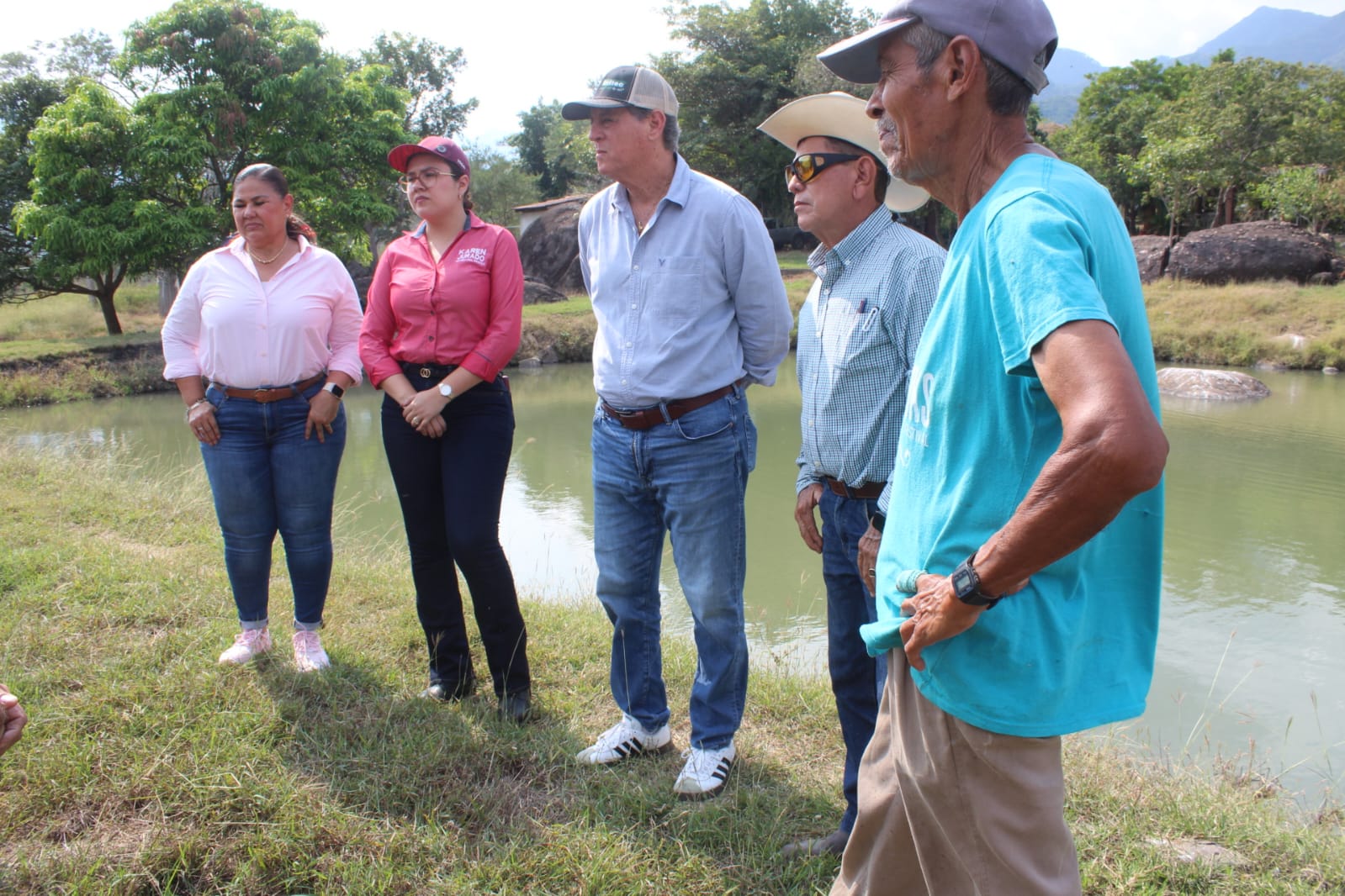 En la gira estuvieron el jefe de Proyectos Hidroagrícolas, Crystian Quijano Martínez; la jefe de Acuacultura y Pesca, María de la Cruz Rivera y las diputadas locales Irma Mirella Martínez y Karen Jurado Escamilla.